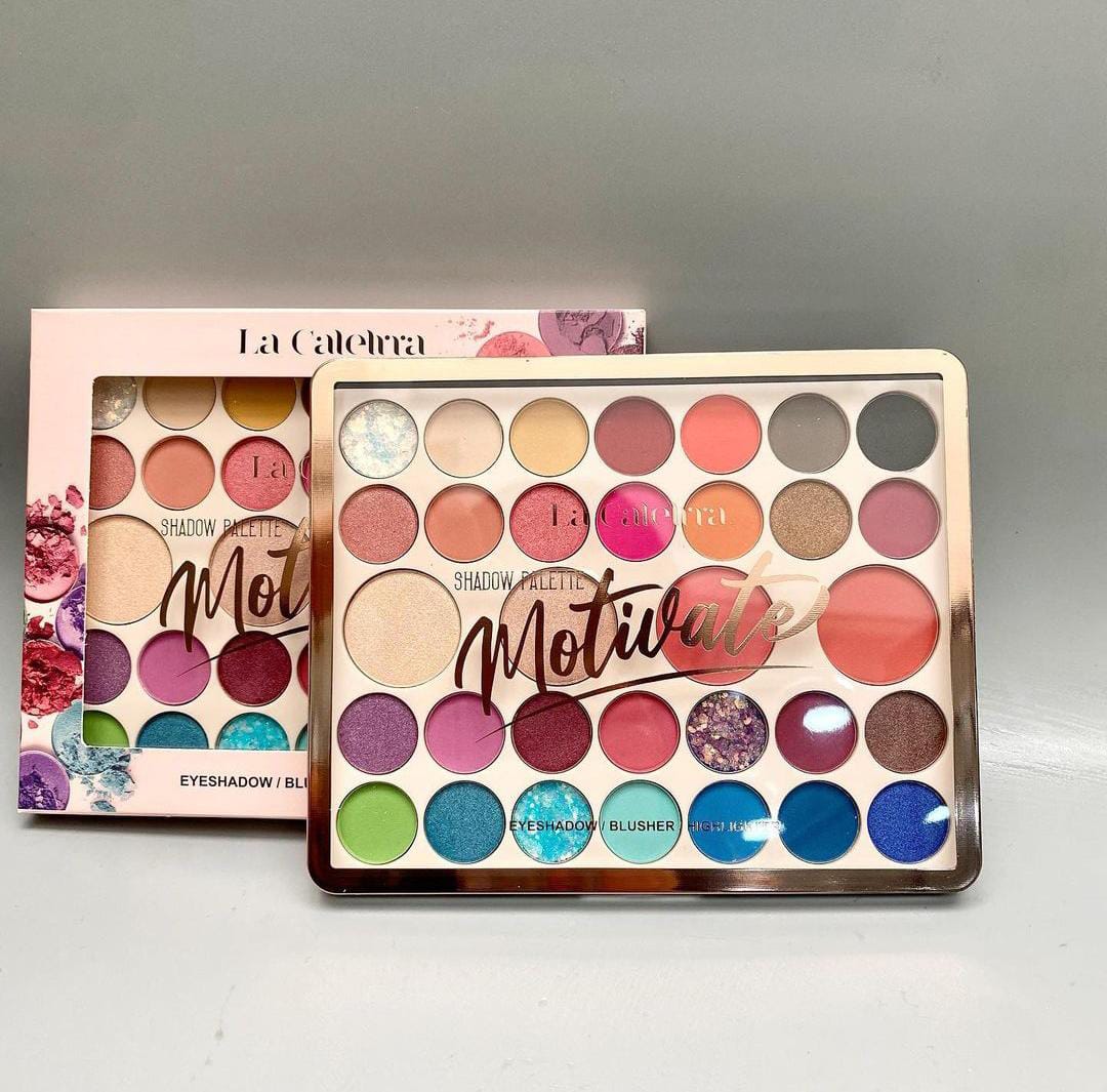 Paleta de sombras con colores hermosos con excelente pigmentación, además que incluye rubores e iluminadores.