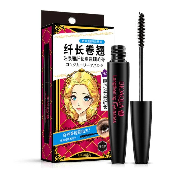 ➡️ Es una máscara de pestañas negra, a prueba de agua, que promete alargar y rizar las pestañas de forma natural, con cepillo en forma de espiral.