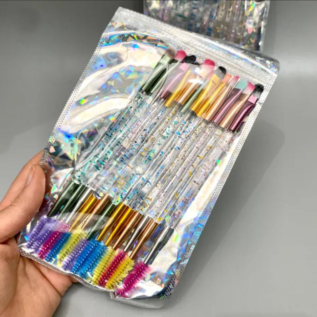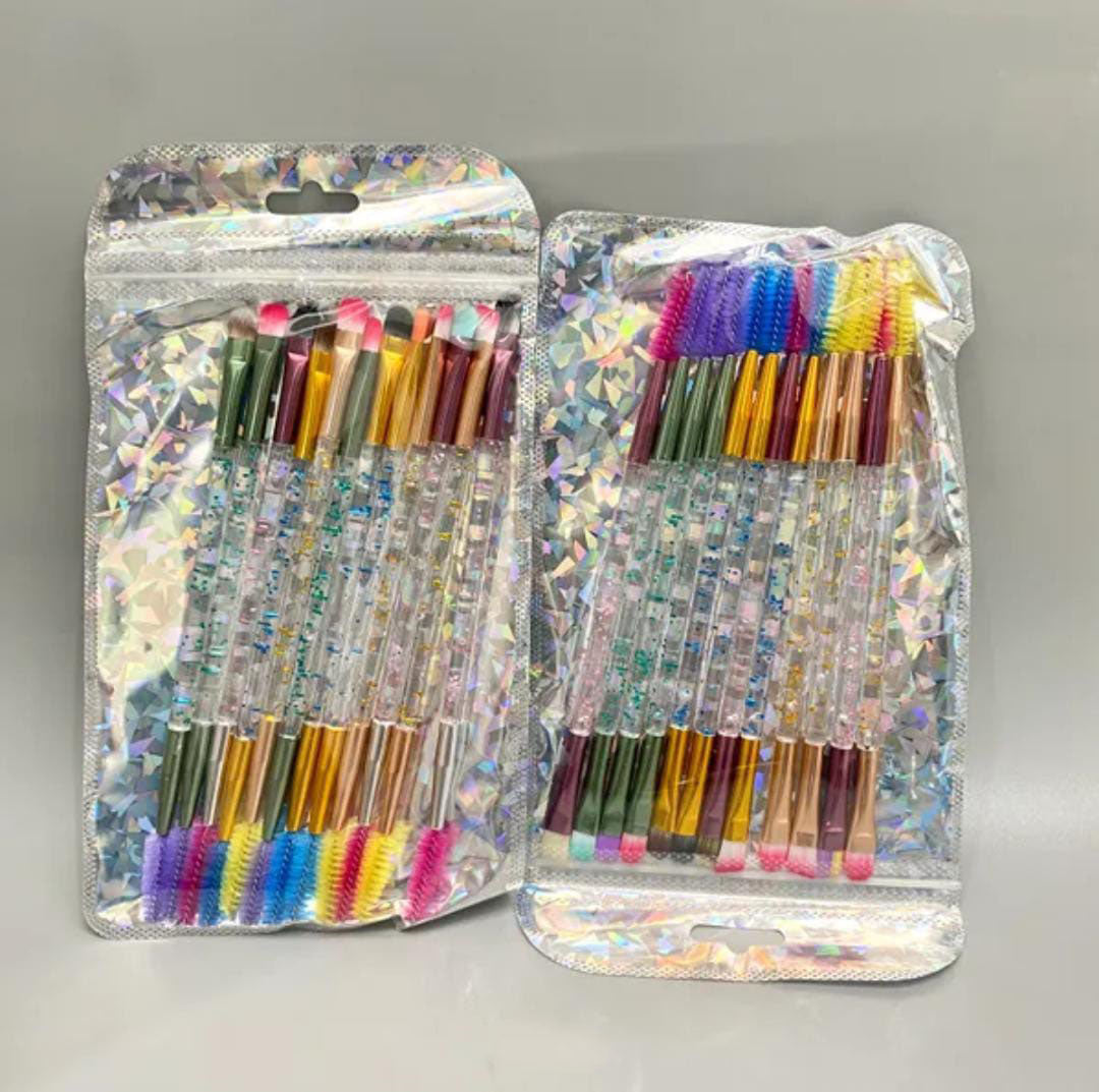 Paquete x 12 Pincel y cepillo para cejas y pestañas diferentes colores.
